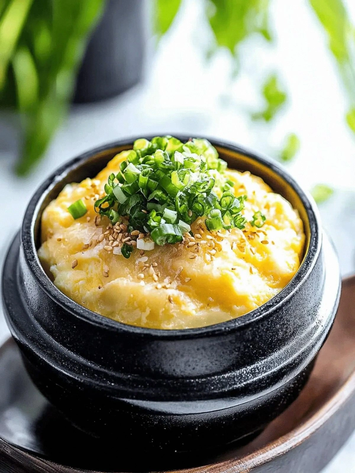 - Gently lift the custard with a spoon or a small spatula, drizzle a little extra toasted sesame oil over the top, and sprinkle chopped green onions and sesame seeds. The final flourish adds crunch, aroma, and a burst of color that makes the dish visually stunning.